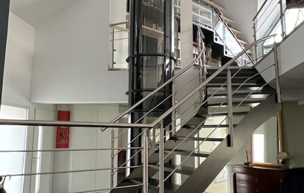 iad France - Marc Desprez vous propose: Exceptionnel ! maison contemporaine de 9 pièces principales sur environ 510 m², l'ensemble est de très bonne qualité avec de belles prestations. Une vaste entrée ouverte sur le séjour/salon/salle à manger et cuisine, ascenseur intérieur, grande piscine intérieure avec couverture et ouverture électrique, cuisine aménagée/équipée (matériels de grandes marques), 4 grandes chambres avec salle de douches dont 1 suite parentale au RDC. 4 terrasses au niveau 1. Au niveau 2, une grande terrasse, une mezzanine, bibliothèque, salle de jeux, coin billard et babyfoot. Garage fermé double et très grand sous-sol. Chauffage par pompe à chaleur par le sol. Tout est en parfait état. Terrain bien clos et jardin paysagé, proche des commodités et transport bus.