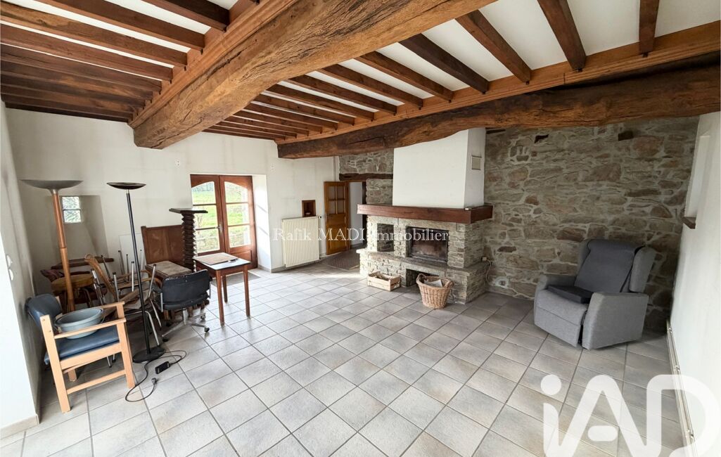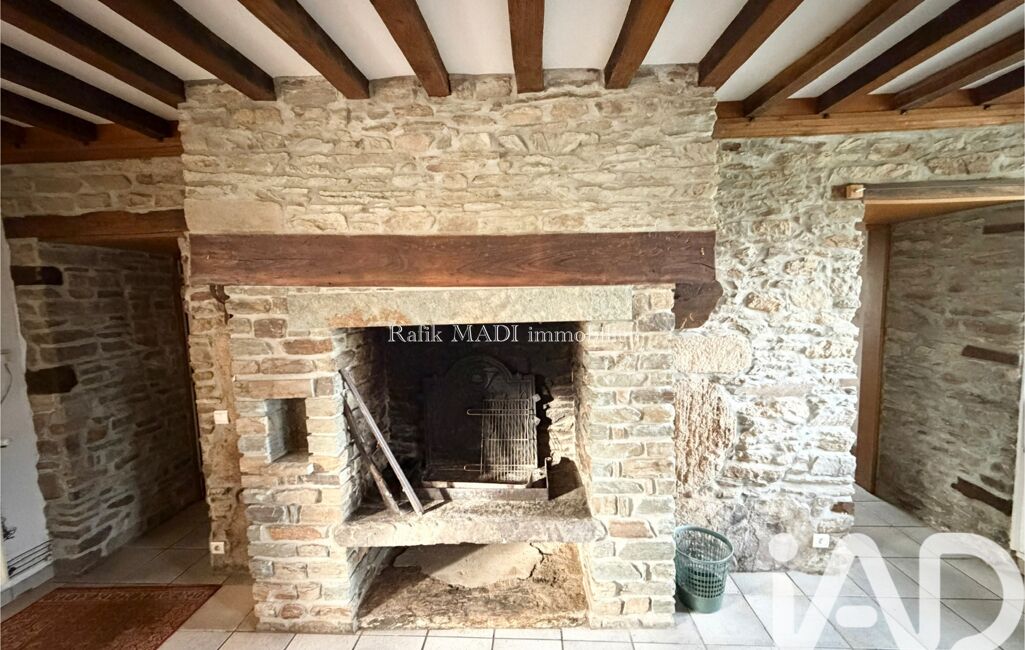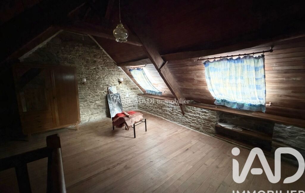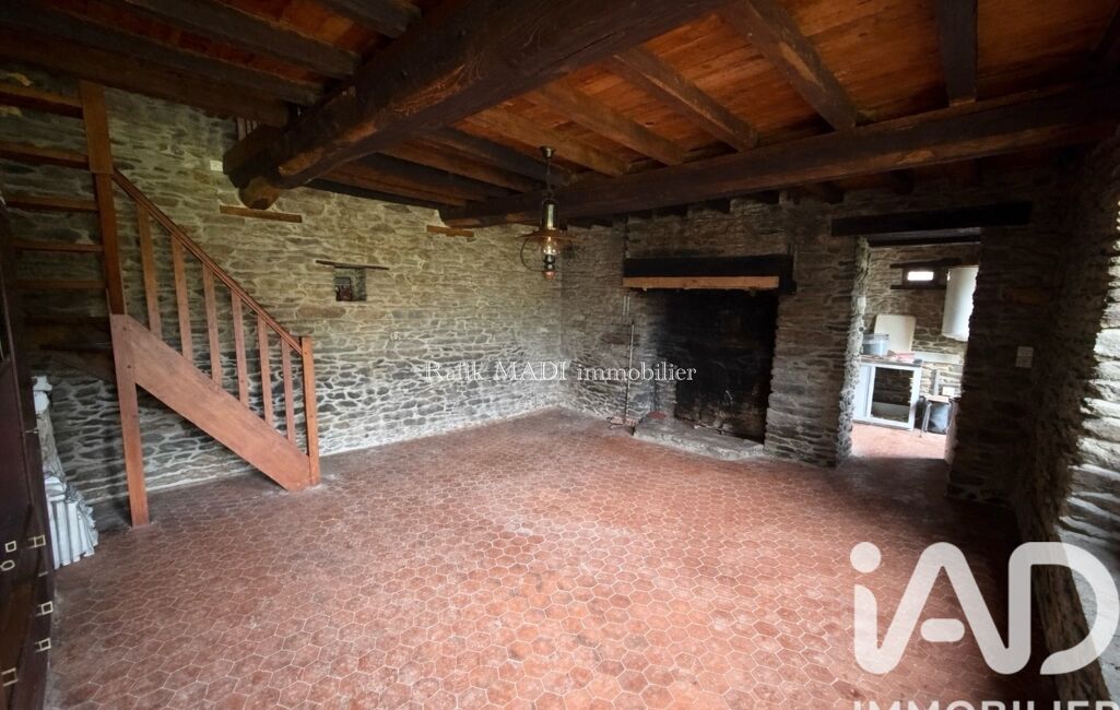 Dépendance de 45 m² à rénover : salon avec cheminée, cuisine, salle d’eau avec WC, chambre à l’étage.