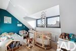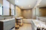 Au 1er étage, le palier dessert 2 chambres, dont une belle chambre parentale avec accès direct à une terrasse de 27 m², sans vis-à-vis, bénéficiant d’une vue dégagée et agrémentée d’un jacuzzi. Une salle de bain avec baignoire, douche à l’italienne et double vasque ainsi qu’un WC indépendant complètent ce niveau.