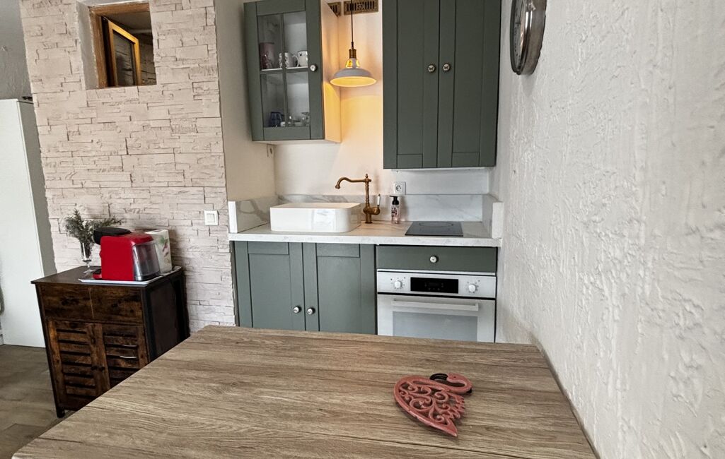 L’appartement a été optimisé avec la création d’un espace chambre ouvert sur le séjour, offrant une vraie séparation tout en conservant luminosité et fonctionnalité. Exposition plein sud.