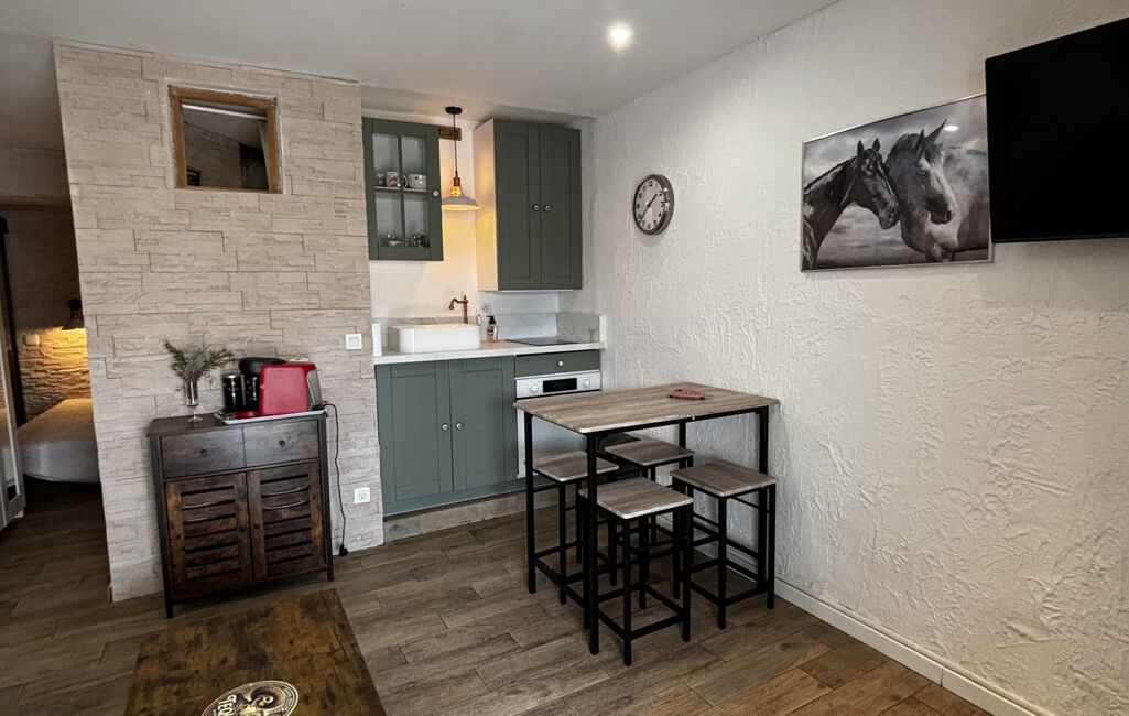 Il se compose d’une pièce de vie avec cuisine aménagée, d’un coin nuit, d’une salle d’eau avec WC et de rangements. Chauffage individuel électrique. Aucun travaux à prévoir.