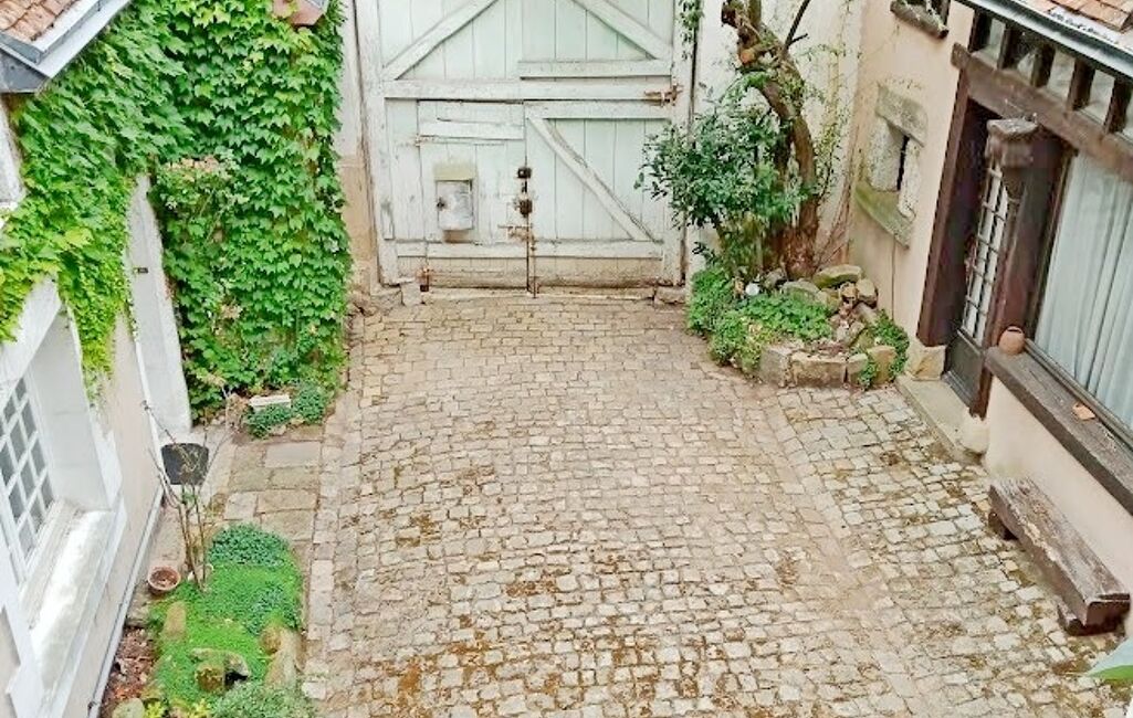 Belle cour intérieure pavée de 300 m², calme et intime avec 2 entrées principales.