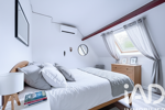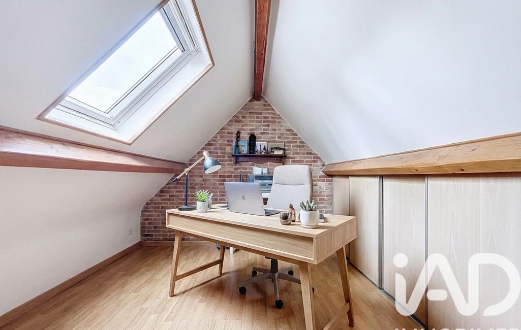À l’étage, l’espace nuit se compose de trois chambres, d’un bureau idéal pour le télétravail, et d’une salle de bains équipée d’une douche et d’une baignoire.