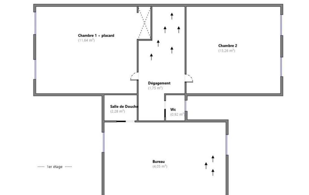 Au premier étage, le palier de 10 m² est idéal pour un espace de télétravail ou un dressing. L'espace nuit offre 2 chambres de 12 et 15 m², une seconde salle d’eau et des WC séparés.