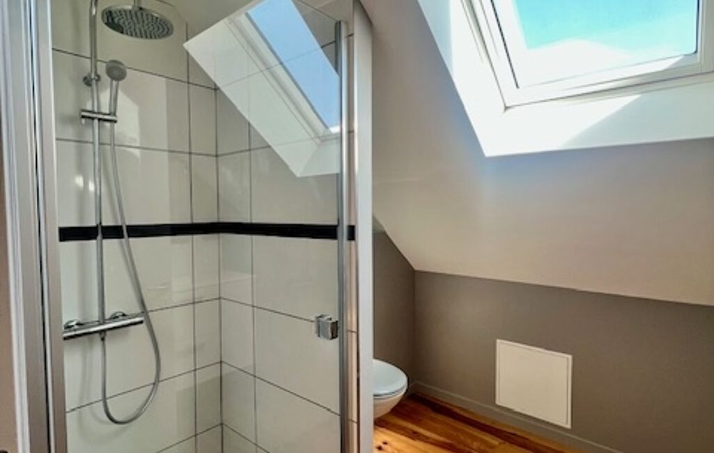 • 2ᵉ étage : une suite parentale récente de 25 m2 avec sa salle de bain privative, douche et WC. Plancher en pin.