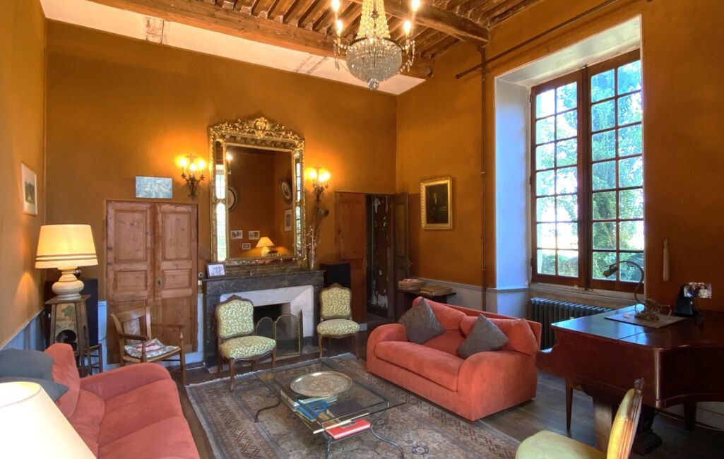 Découvrons la maison de maître, avec un somptueux hall d’entrée, 3 salons au rez-de-chaussée, dont celui en salle de billard qui est orné de toiles peintes par l’artiste Pizetta, inscrites à l’inventaire Supplémentaire des Monuments Historiques. Un séjour cuisine de 40 m² avec cheminée, Au demi-niveau inférieur, une cuisine, salle d’eau et toilettes. Un escalier majestueux pour accéder au premier étage avec 6 chambres et une salle de bain. Au 2° étage des combles aménageables… Au sous-sol des caves.