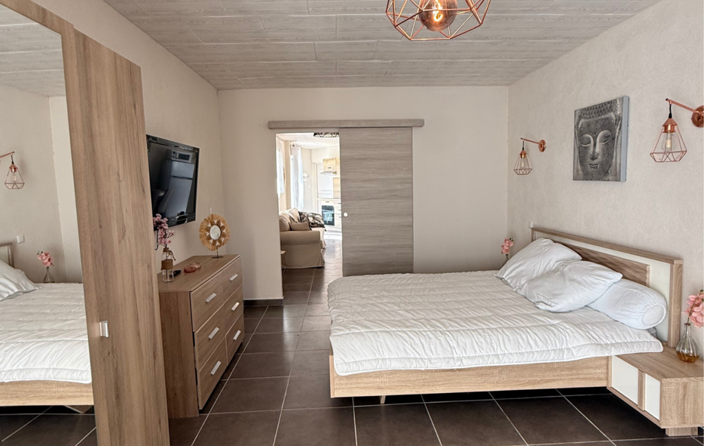 Attenant à la maison, un T2 avec cuisine équipée permet d’accueillir famille et amis en toute indépendance, ou d’envisager un projet locatif.