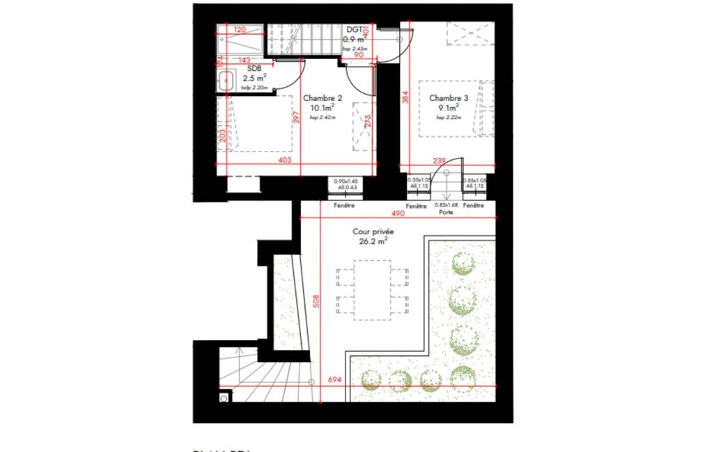 - Extérieurs : balcon de 10 m² environ et cour privative arborée de 26 m² environ, une rareté en cOEur de ville.