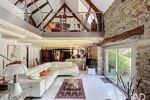 Une vaste pièce de vie de plus de 60 m² environ, composée d’un double salon sous plafond cathédrale, offrant un volume exceptionnel et une belle luminosité