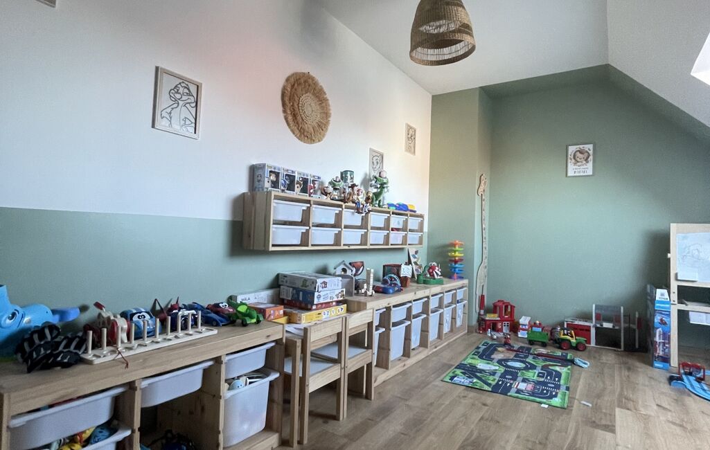 Ce charmant semi plain-pied est composé d'un beau et vaste salon séjour , d'une cuisine équipée , d'un coin buanderie et d'une suite parentale au rez de chaussée.