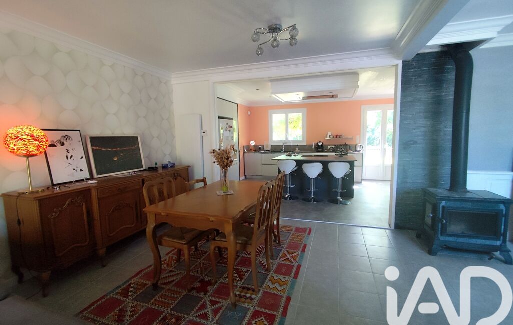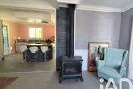 L’entrée ouvre sur une belle pièce de vie lumineuse comprenant un salon séjour chaleureux avec poêle à bois ainsi qu’une grande cuisine ouverte avec îlot central offrant un espace convivial et fonctionnel pour la vie quotidienne et les moments en famille