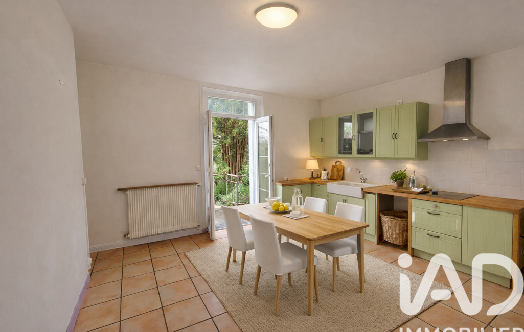 La maison offre environ 137 m² habitables : cuisine dinatoire, salon parqueté avec cheminée, 3 chambres, salle de bains avec WC. Combles aménageables, buanderie et cave.