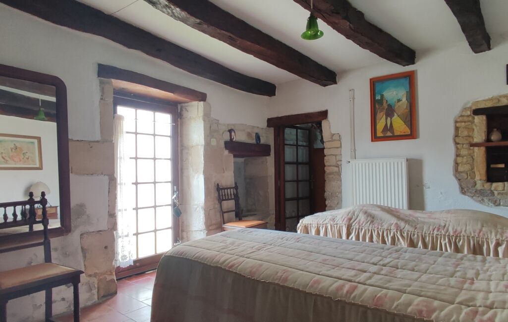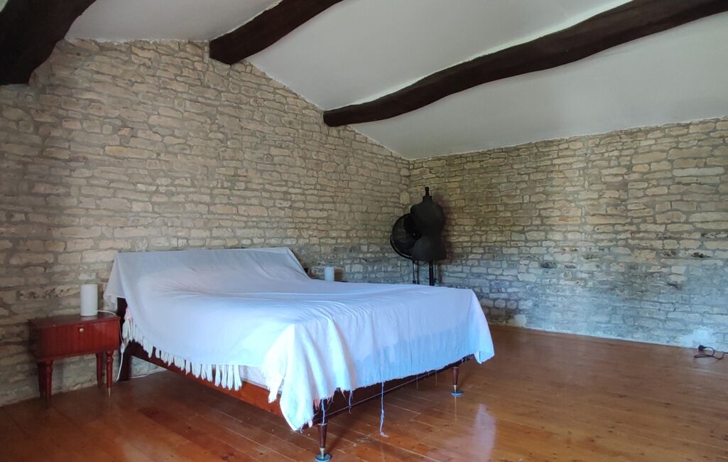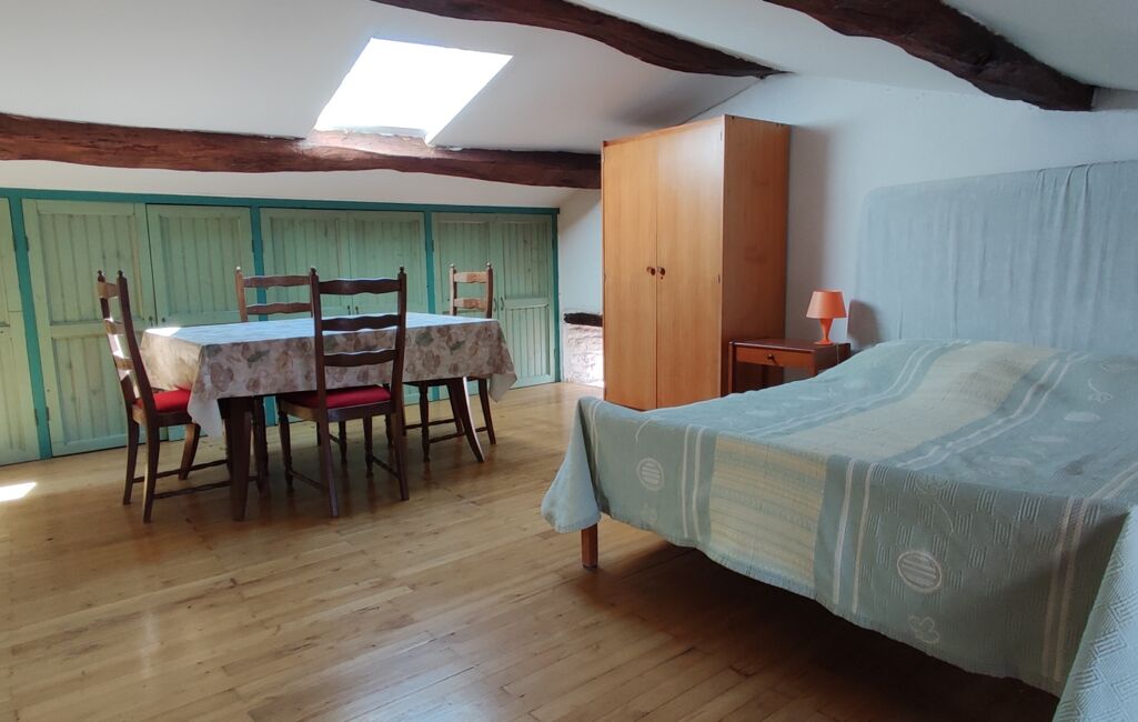 Première partie : Ancienne chèvrerie restaurée en habitation disposant de deux grandes chambres dont une au rdc, la seconde à l'étage, avec placard intégré et un vélux.