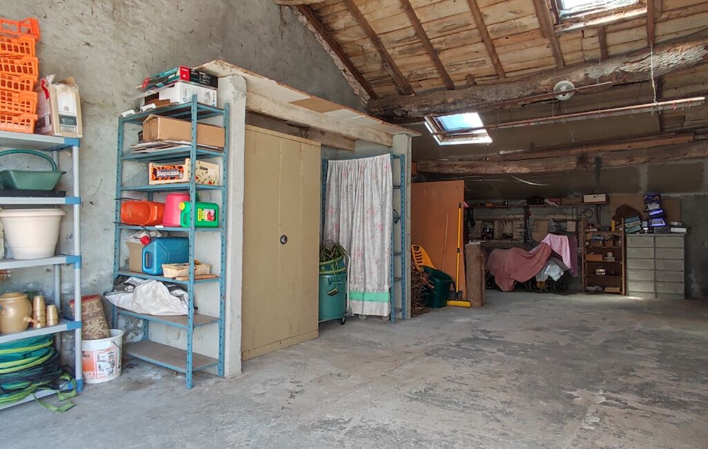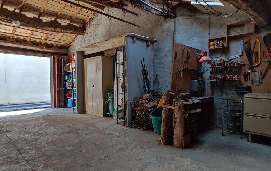 Un garage d'environ 50m2 avec portail manuel permet de stationner deux véhicules tout en gardant un espace atelier.