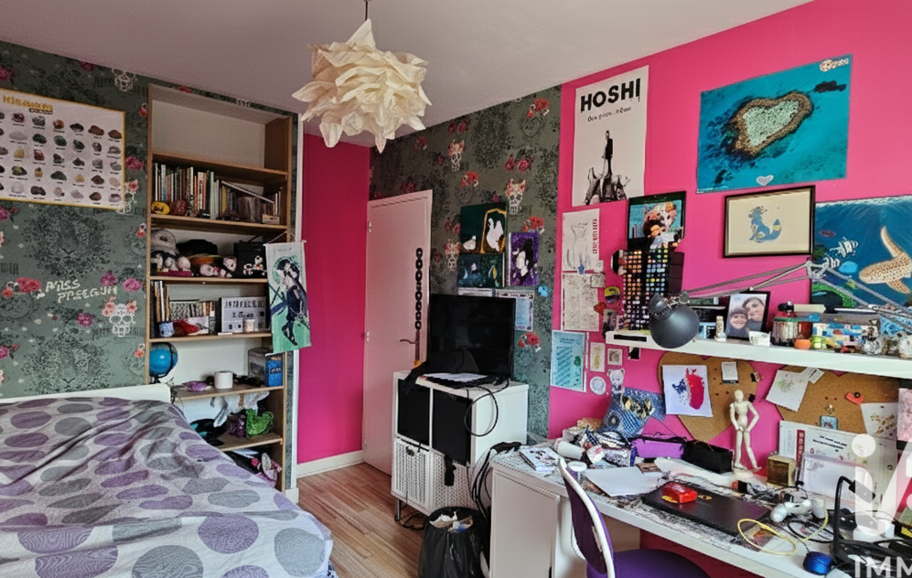 À l’étage, vous trouverez une chambre parentale avec salle d’eau et dressing, deux chambres avec rangements, ainsi qu’un espace bureau ouvert. S’y ajoutent une salle de bains et un WC séparé.