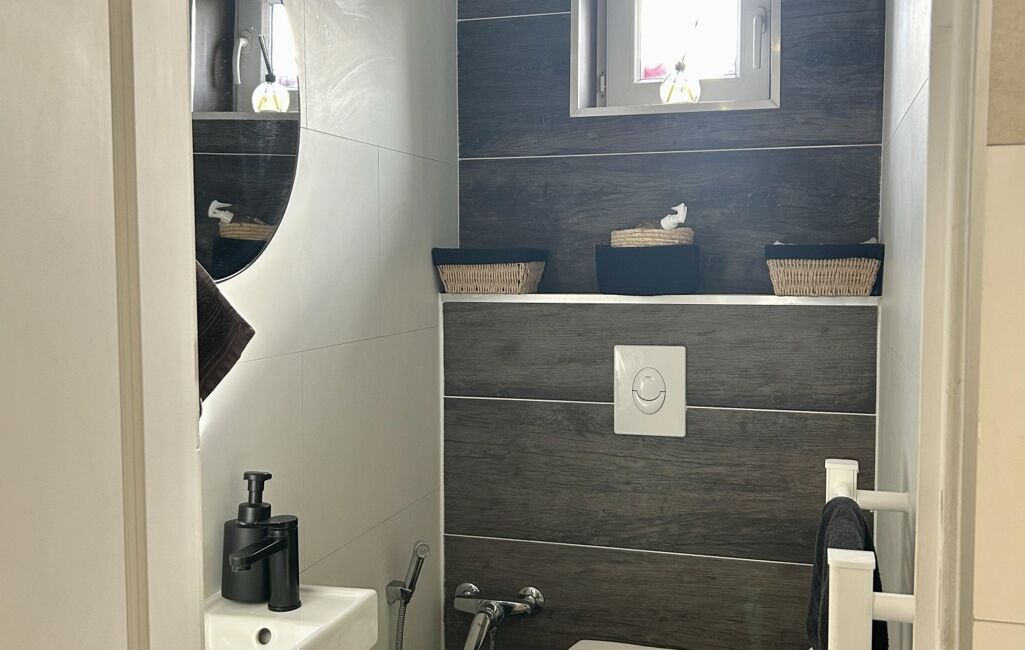 Un bel espace au calme abrite ensuite 3 chambres spacieuses et une grande salle de jeux qui saura ravir les enfants de la famille, mais aussi un bureau idéal pour le télétravail. L'entrée de la maison donne, quant à elle sur un WC et une belle salle d'eau avec vasque et douche à l'italienne.