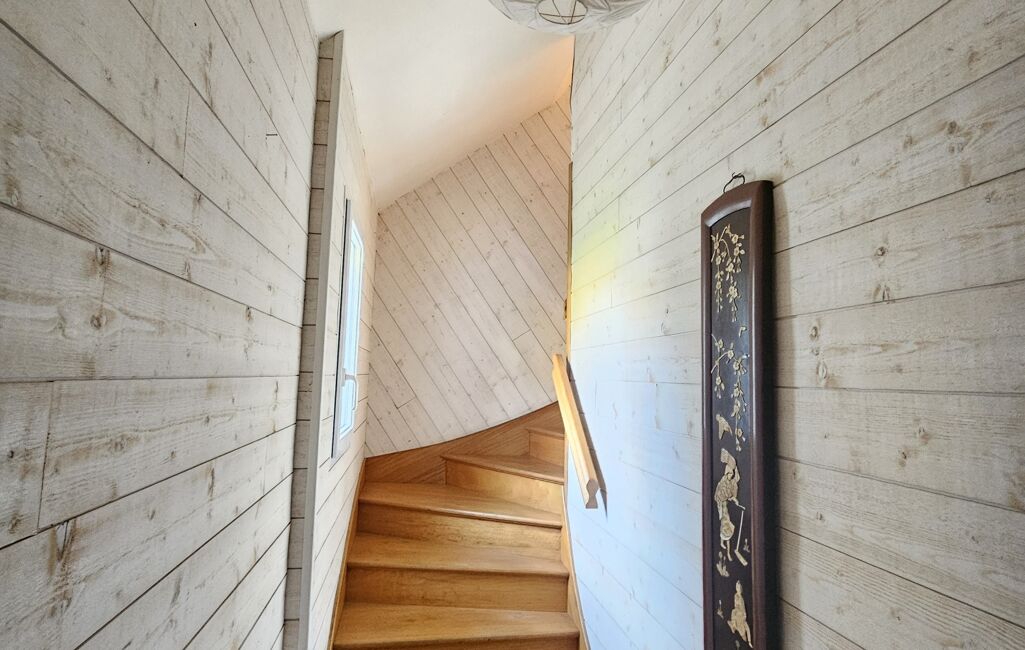 À l'étage, vous trouverez 3 chambres lumineuses, dont 1 chambre avec la belle vue plage, une salle de bain avec wc indépendant. Chaque espace a été pensé pour offrir confort et bien-être