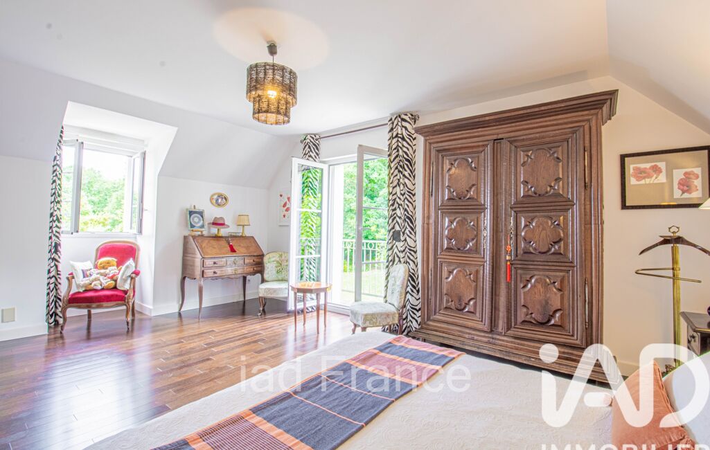 iad France - Cyriane Chevalier vous propose: Rare à Maule : parfaitement à l’abri des regards, au coeur d’un beau parc arboré, magnifique demeure de 2012, aux prestations de qualité et volumes généreux. 270m², 9 pièces, 6 chambres dont 1 grande de plain-pied, 4 salles d’eau. Terrain piscinable de 3 300m², sous-sol total de 140m². Double garage. DPE C. Agrandissement possible.