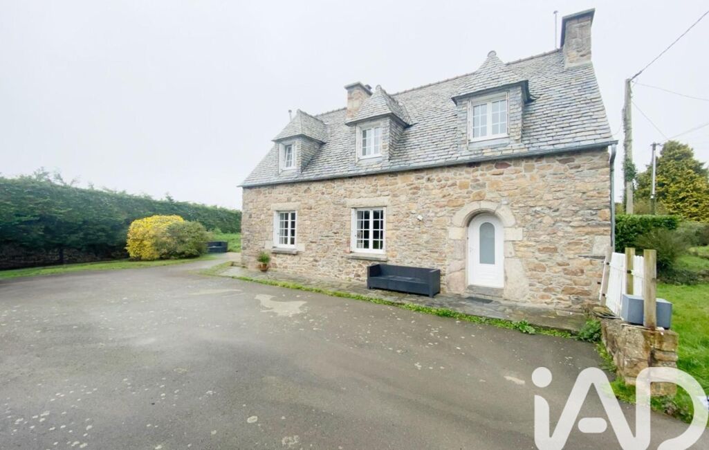 iad France - Irwin Houssin vous propose: À découvrir, charmante MAISON EN PIERRES et couverte en ARDOISES DE LOCQUIREC, typiquement bretonne, située sur la commune de LANMEUR, dans un petit hameau calme à la campagne et à moins de 10 MN DES PLAGES. Édifiée sur un terrain de plus de 1600 m², elle offre environ 90 m² habitables avec une belle entrée dotée de rangements pratiques, une pièce de vie lumineuse de 30 m² avec poêle à bois, cuisine aménagée et équipée séparée, salle d’eau, un cabinet et toilettes indépendant. A l’étage, un palier dessert TROIS CHAMBRES et un toilettes. À l’extérieur, terrasse bois, parking en enrobé, une dépendance à usages de garage et de buanderie et un bûcher.