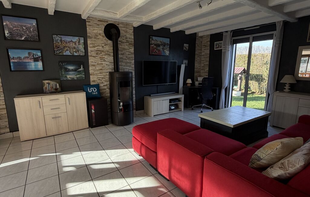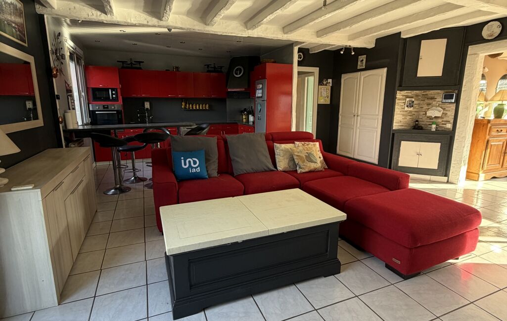 iad France - Corinne LEBON vous propose: VARREDDES, Maison plain pied, construction Phénix, grande pièce de vie et sa cuisine équipée/aménagée, un couloir, 3 chambres, un wc, une salle d'eau moderne. Un garage et une pièce au dessus complète ce bien.