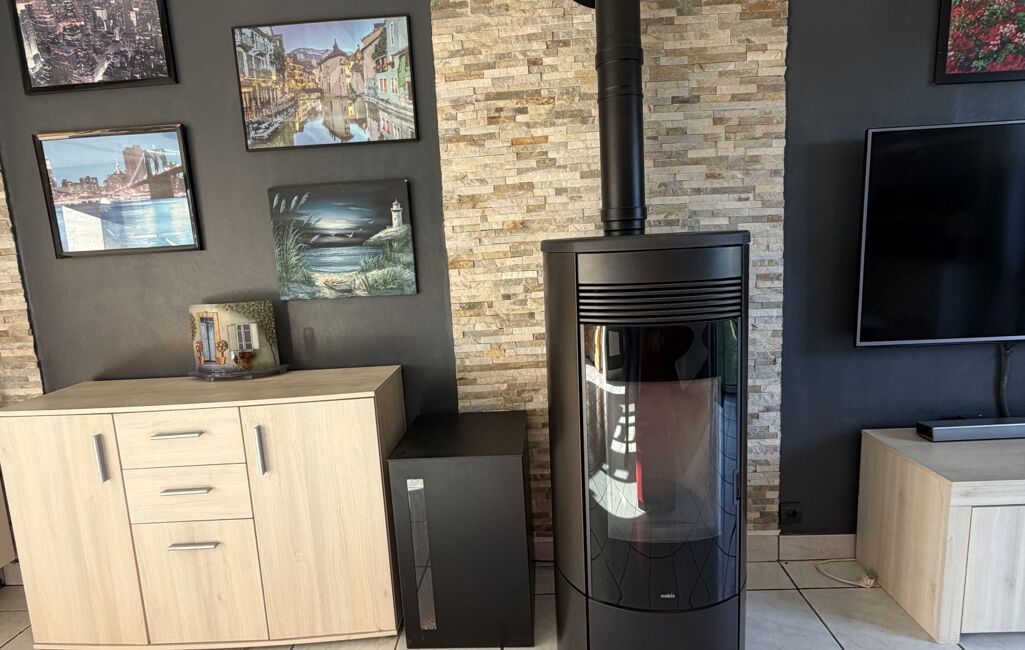 Cette maison est chauffée par le poêle à granulés ainsi que des convecteurs électriques. Possibilité d'aménager les combles plus tard. Située dans un quartier calme à quelques pas de l'écoles et des commerces.