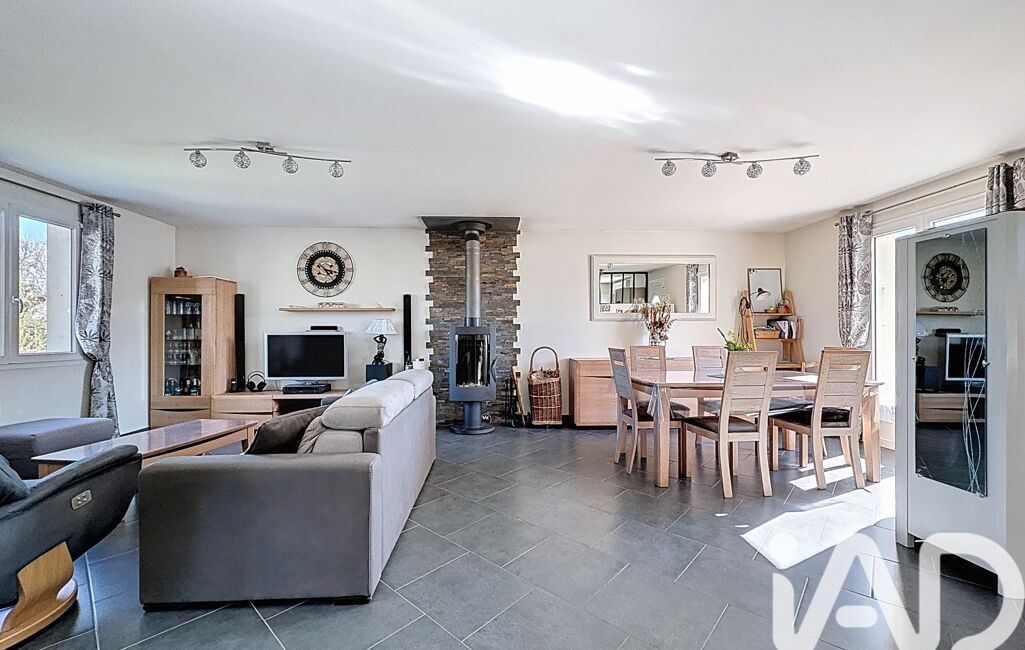Située dans un environnement calme, cette maison de plain-pied entièrement reconstruite en 2010 offre environ 110 m² habitables sur une parcelle de 1 491 m².