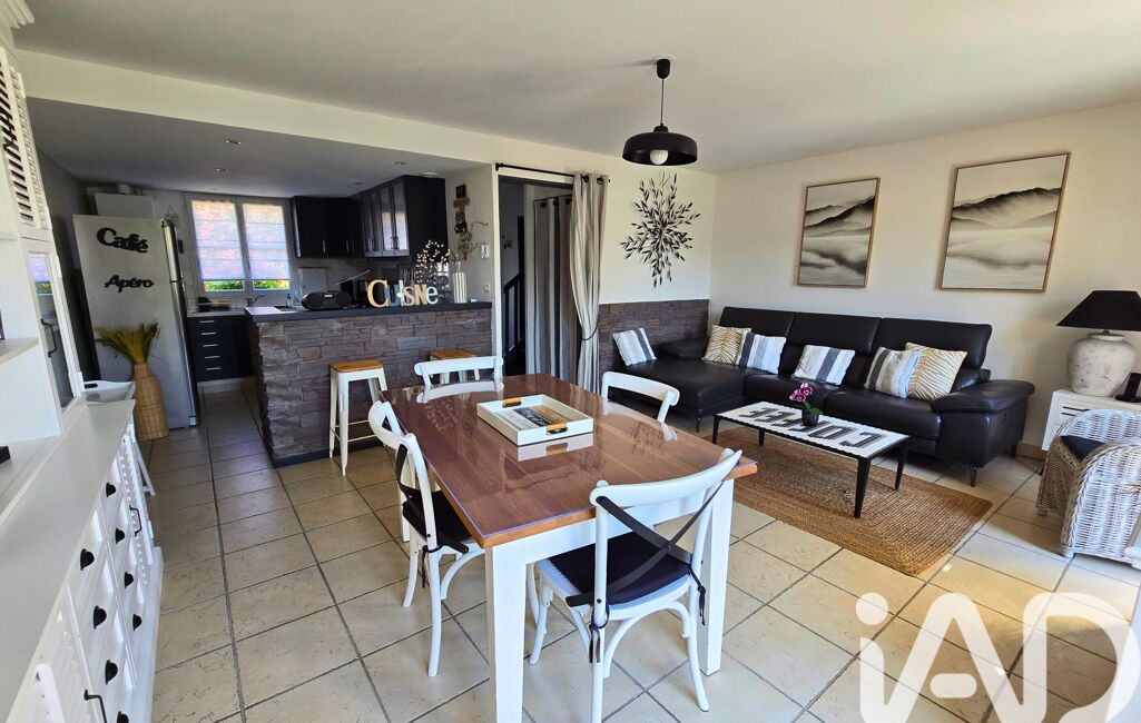La maison se compose au rez-de-chaussée, d'une entrée qui dessert la pièce de vie aménagée en séjour avec coin salle à manger ouverte sur cuisine. Un accès direct au garage ainsi que des WC complètent ce niveau.