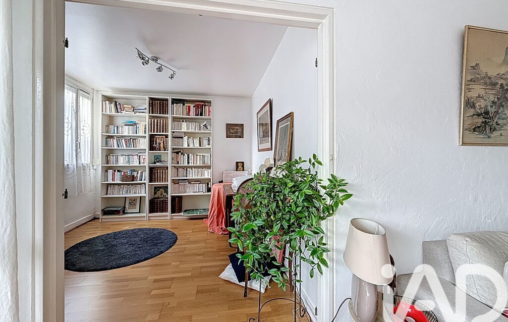 La pièce attenante au séjour est aménagée en BUREAU/BIBLIOTHÈQUE, créant un espace de travail confortable. Elle peut naturellement faire office de salle à manger ou être facilement transformée en TROISIÈME CHAMBRE en réinstallant les portes doubles d’origine.
