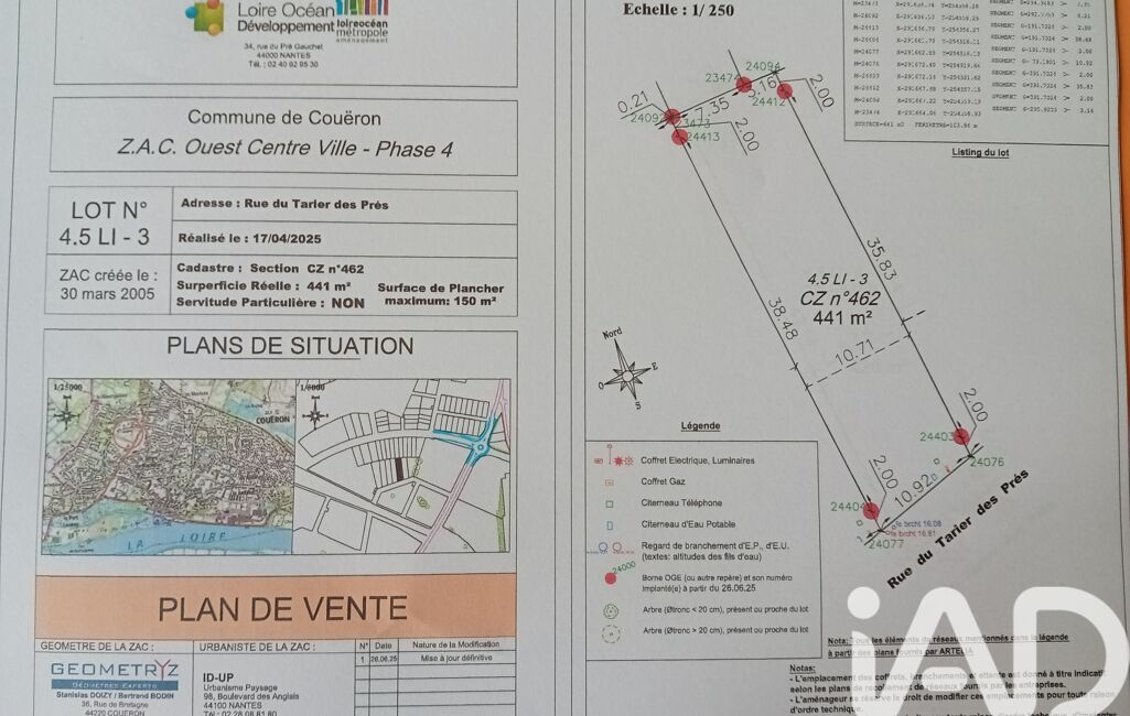 iad France - Stéphane Geffroy vous propose: Rare sur le marché, ce terrain à bâtir de 441m², situé à Couëron dans le nouveau quartier Ouest Centre Ville, offre une occasion unique de construire la maison de vos rêves dans un cadre verdoyant et calme.