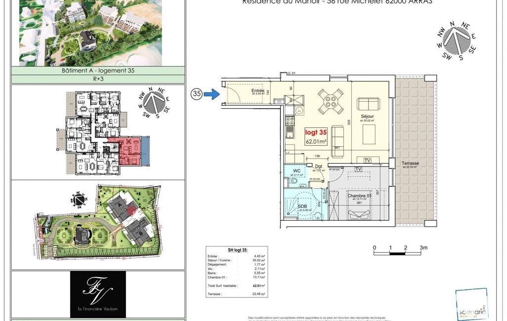- Surface habitable : 62 m²