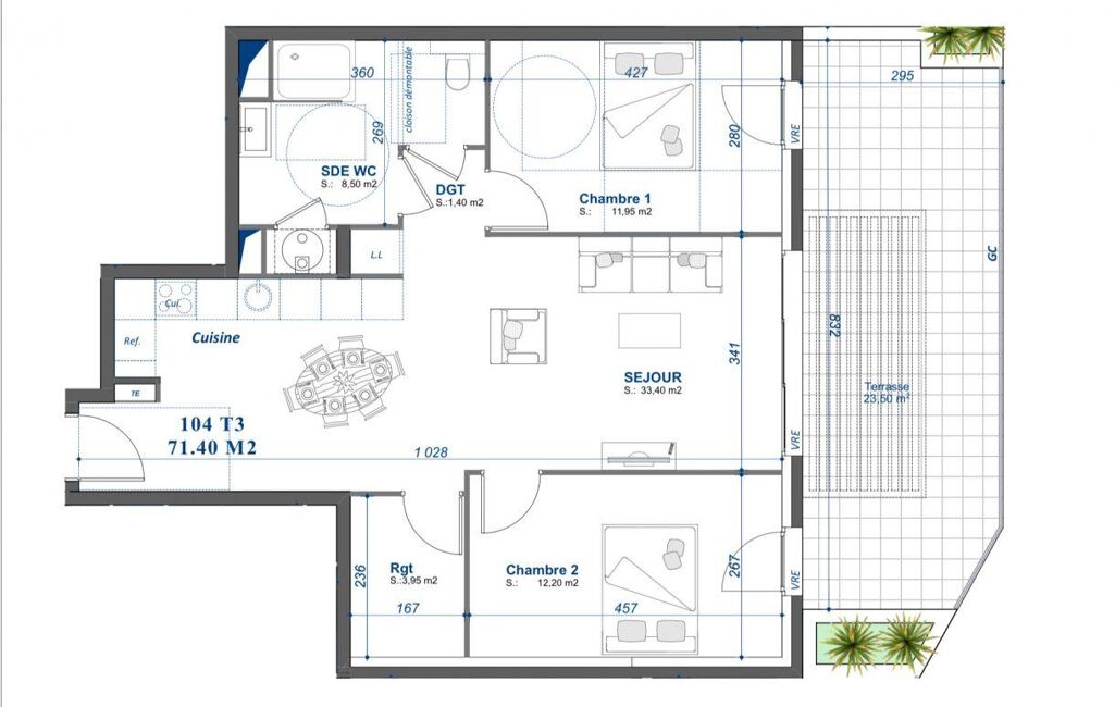 • Surface habitable : 71 m²