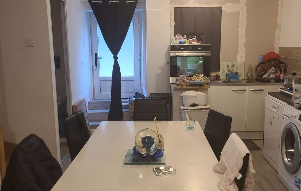 La pièce de vie principale se compose d'une salle à manger conviviale, parfaite pour partager des repas en famille ou entre amis. L'ensemble de la maison a été rénové avec soin, offrant un mélange subtil entre le cachet de l'ancien et le confort moderne.