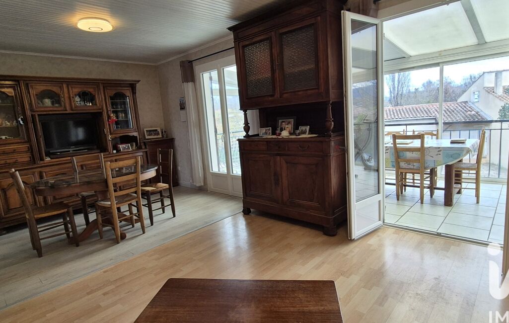 Au 1er étage : 83 m² de surface habitable + une véranda de 24 m² avec barbecue et vue imprenable sur le château de Montéléger, un salon-séjour ouvert sur une cuisine équipée, 3 chambres, une salle de bain et WC.