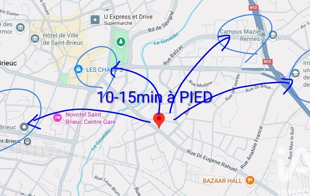 iad France - Jaehee Dincuff vous propose: Immeuble composé d’une HABITATION de 6P + du LOCAL COMMERCIAL au rdc, à Saint-Brieuc, IUT de St-Brieuc et Campus Mazier-Rennes 2 à 15min à PIED, Centre commercial(Centre ville) à 5-10min à PIED, GARE de Saint-Brieuc à 15min à PIED, Accès rapide à la N12, à Saint-Brieuc, Côtes d’armor, Bretagne,