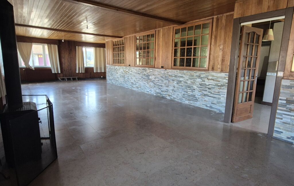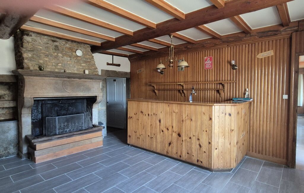 - Espace de vie : Ancien bar avec cheminée en pierre apparente