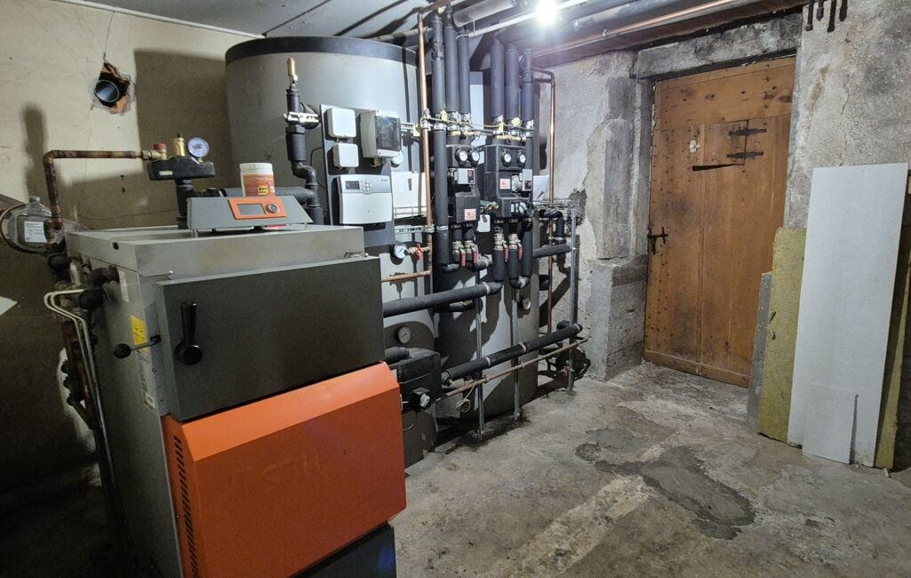 - Chaudière à bois neuve, adaptée au volume de la maison