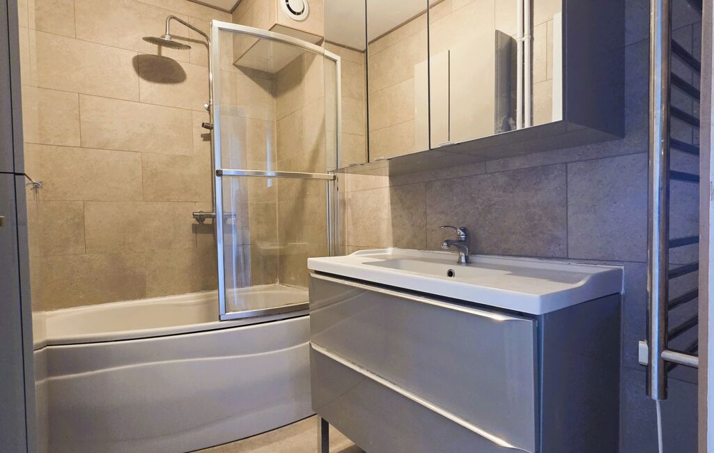 - Salle de bain aménagée avec sèche-serviette.