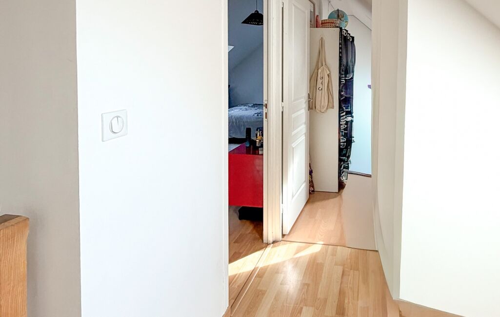 À l’étage, le palier dessert deux chambres confortables ainsi qu’une salle de bains. Un espace supplémentaire offre plusieurs possibilités d’aménagement : bureau, dressing, chambre d’appoint ou salle de jeux, selon les besoins de la famille.