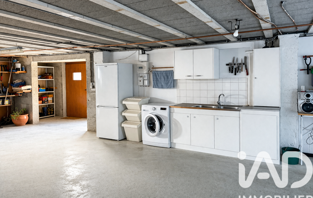 Grand sous-sol avec garage, coin buanderie et cave : 83 m²
