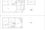 RDC : entrée/séjour, salle à manger, cuisine séparée, wc.