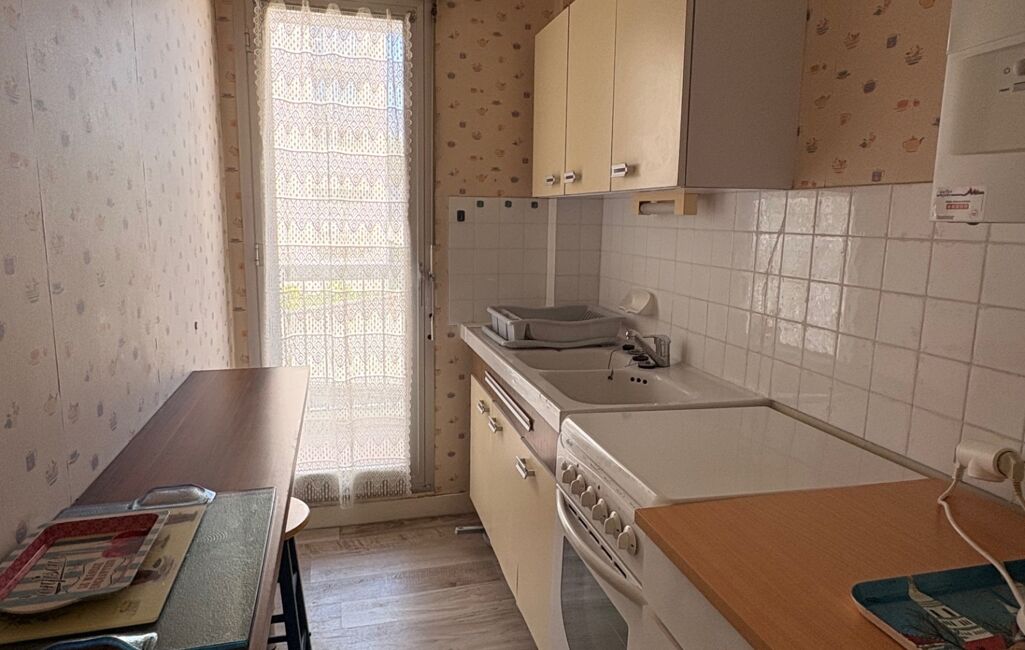 iad France - Nicolas Briard vous propose: Marché de Pornichet, au 1er étage avec ascenseur, dans une copropriété bien entretenue, venez découvrir cet appartement deux pièces de 37m2 environ composé d'une entrée desservant une belle pièce de vie avec espace repas et salon donnant sur un balcon, une cuisine, une chambre et une salle d'eau. Une cave complète ce bien. Quelques travaux à prévoir.