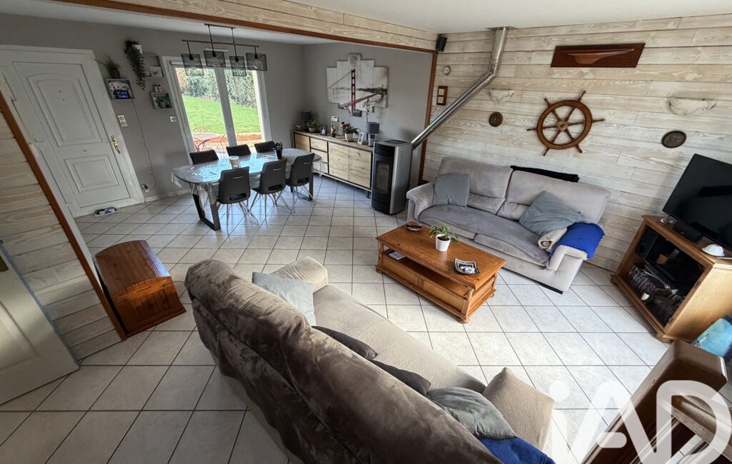 Au rez-de-chaussée, vous trouverez un vaste espace de vie lumineux de 50m2 équipé d'un poêle à granulés comprenant un séjour, une salle à manger, et une cuisine. Les grandes baies vitrées offrent une vue imprenable sur le jardin. L'exposition est idéale, orientée à l'est pour profiter de la luminosité tout au long de la journée.