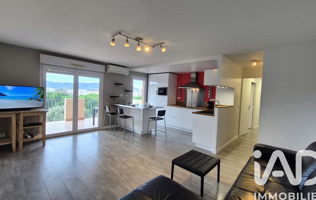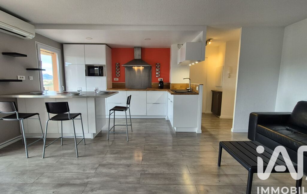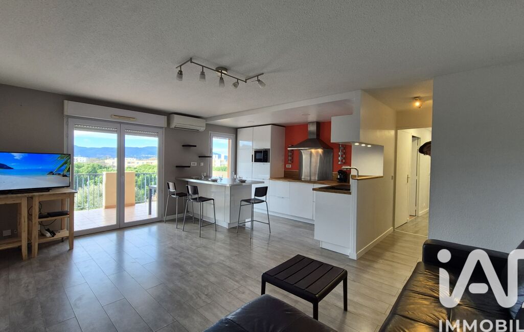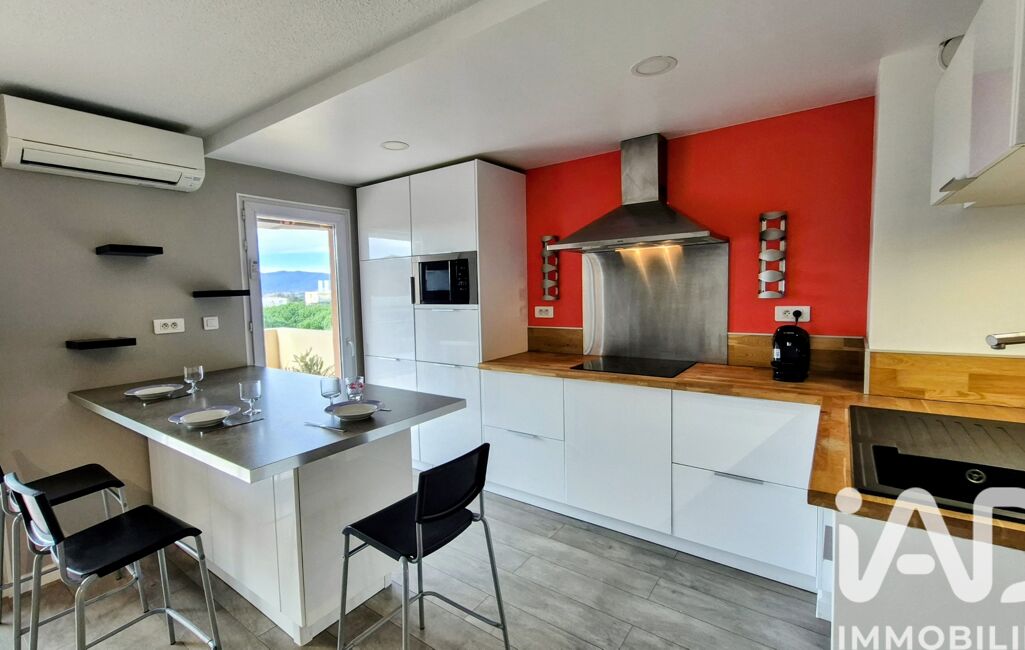 L'espace de vie principal est spacieux, comprenant une cuisine ouverte entièrement équipée et donnant sur une magnifique terrasse de 15 m², parfaite pour profiter des rayons de soleil méditerranéen.