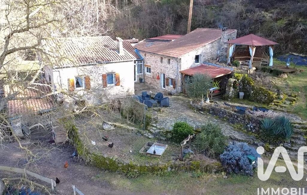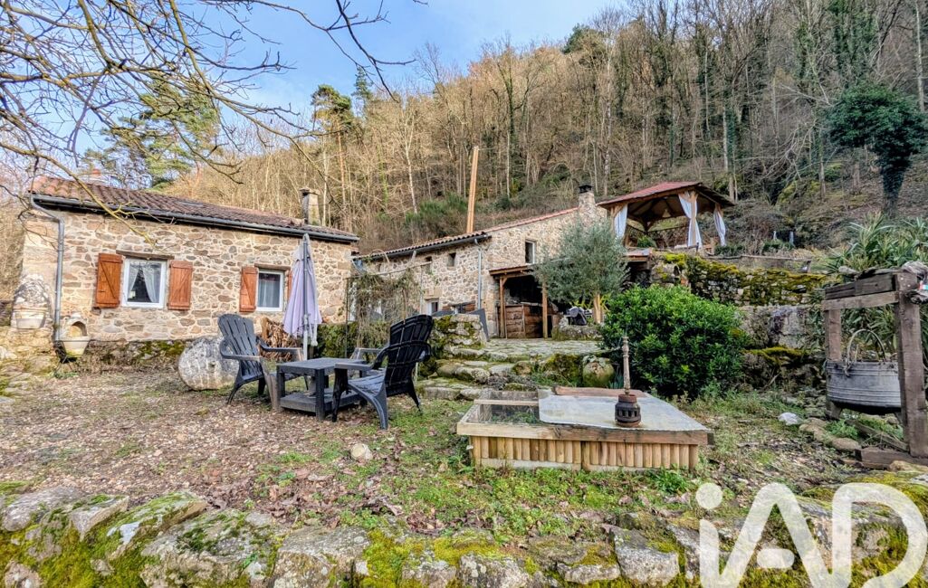 iad France - Isabelle Lallemand vous propose: Nichée dans un écrin de verdure, cette superbe maison en pierre propose environ 144 m² de surface habitable et offre un cadre de vie rare, bercé par le doux murmure de la rivière du Doux, toute proche.
