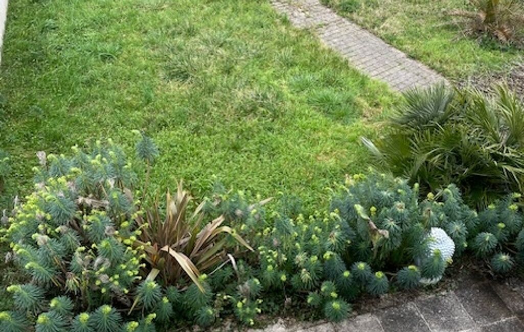 Une terrasse liant maison au garage, le tout sur un terrain de 594 m2. L'assainissement est au norme.