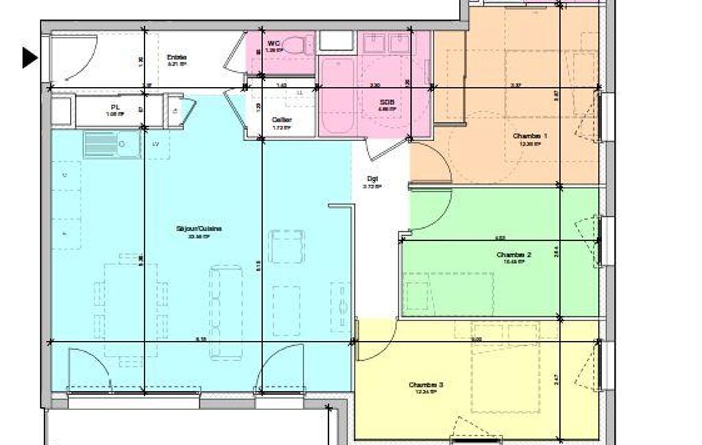 - Espace de vie de 33,59m² environ