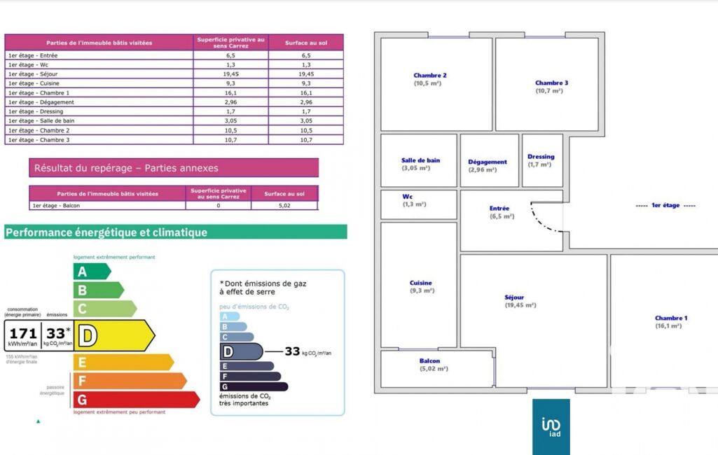 Information d'affichage énergétique sur ce bien : classe ENERGIE D indice 171 et classe CLIMAT D indice 33. Les informations sur les risques auxquels ce bien est exposé, y compris l'obligation légale de débroussaillement, sont disponibles sur le site Géorisques : http://www.georisques.gouv.fr.