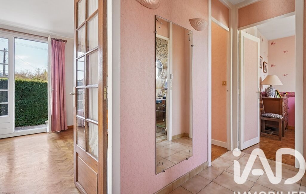 iad France - Pierre-Etienne Launay vous propose: A VISITER SANS TARDER !!! Dans un quartier calme et verdoyant maison de plain pied à fort potentiel .Dès l'entrée vous serez séduits par ses volumes et sa luminosité. Elle se compose d'une entrée, d'une cuisine dînatoire indépendante, d'un vaste séjour/salle à manger lumineux avec cheminée donnant sur une terrasse exposée plein sud, idéale pour les déjeuners en famille ou entre amis, de deux chambres, d'une salle de bains avec wc. Idéalement située à proximité des commerces et des écoles (maternelle, primaire et secondaire pharmacie..5min). Un garage, une buanderie et un atelier terminent le bien.Possibilité de stationner un ou deux véhicules sur la parcelle. Grenier aménageable ou possibilité d’extension par surélévation. Des travaux sont à prévoir (rafraîchissement). Chaudière gaz neuve.