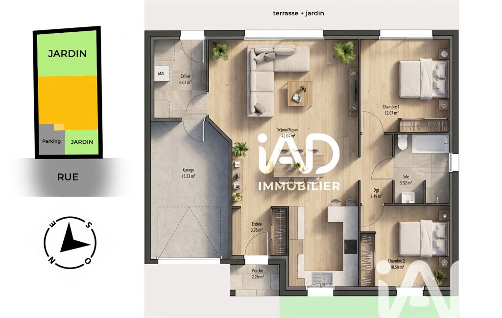 D’une surface de 83 m² de plain-pied , elle offre une belle pièce de vie lumineuse avec cuisine ouverte, donnant sur une terrasse et un jardin clos facile d'entretien. L’espace nuit se compose de 2 chambres, une salle d’eau et WC séparés.