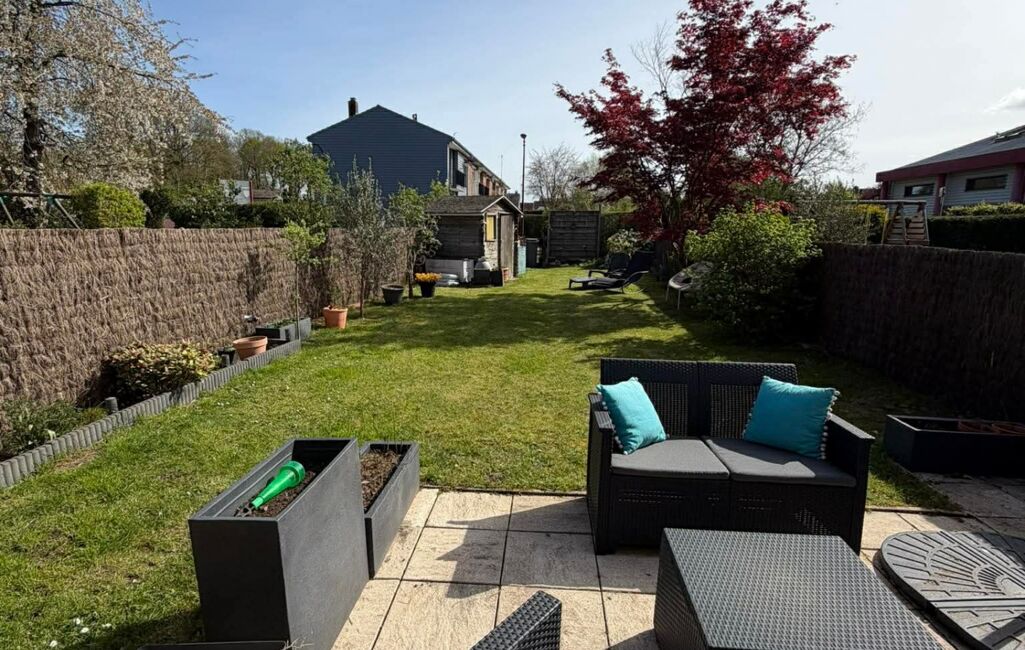 La maison se compose d'une entrée, d'un séjour de 23m², un salon de 12m² donnant accès à un joli jardin, une cuisine ouverte et équipée, et un WC séparé. Chaque espace est lumineux et fonctionnel, offrant un cadre de vie agréable.